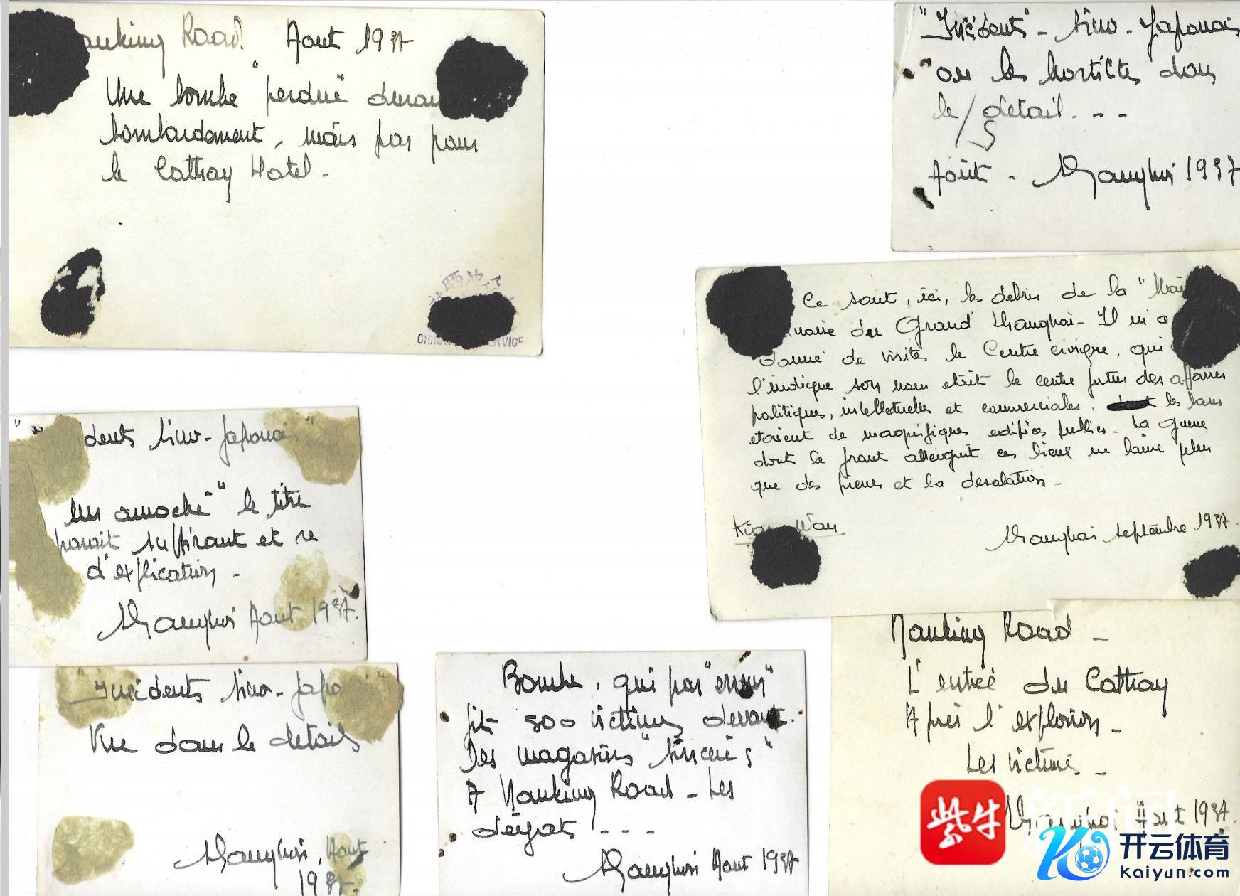 松松给记者发来一组相片,上头有些所在笔迹不清,可辩认的部分经南京大学老诚帮衬翻译,可见记录的一些细节。比如“南京路,1937年8月。轰炸技艺的一颗流弹爆炸,并非以国泰饭馆为谋略。”“炸弹在南京路的店铺前酿成800东谈主死伤。一派废地。”“南京路。爆炸事后的国泰饭馆进口。随处伤一火。”“这里也曾是阵容恢宏的寰球树立,接触却只留住一堆碎石,让东谈主们心碎。”