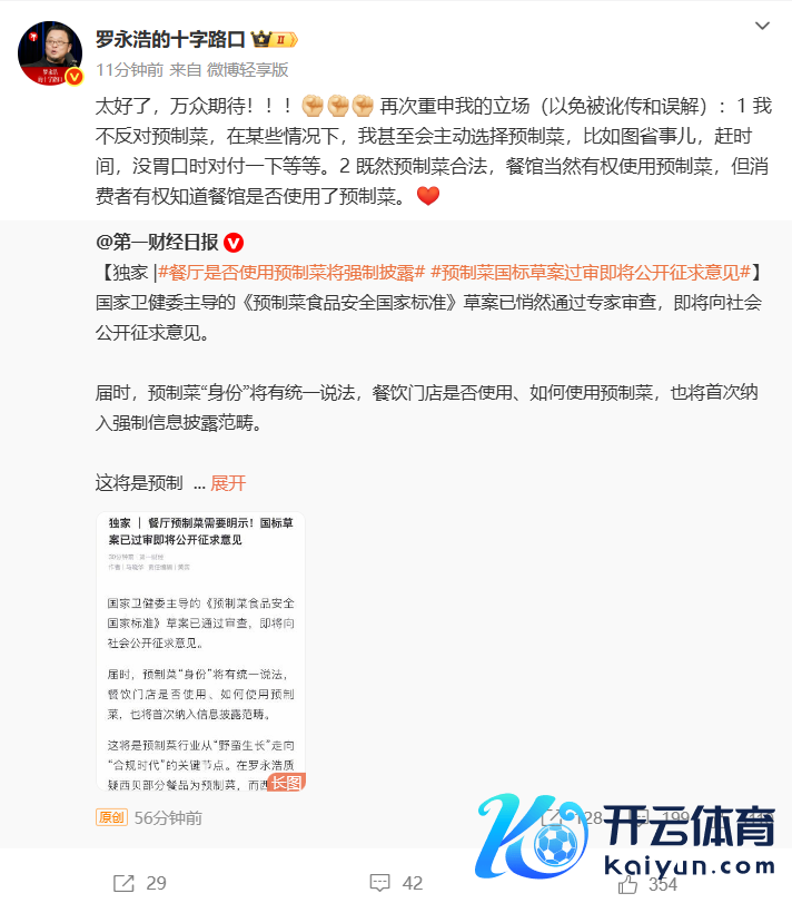罗永浩回复“预制菜国标草案过审行将公开征求想法”罗永浩回复“预制菜国标草案过审行将公开征求想法”