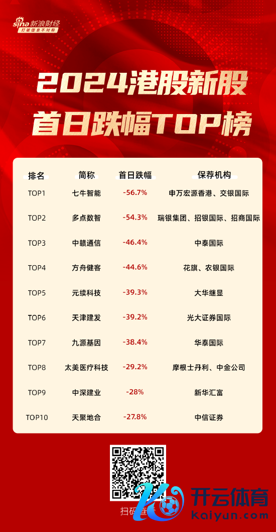 猖狂12月31日,本年共有70家新股登陆港股阛阓,募资总和达到878亿港元,同比旧年增长87.8%。部分新股上市首日即大跌,七牛智能首日跌56.7%,保荐机构为申万宏源香港和交银国外;多点数智首日跌54.3%,保荐机构为瑞银集团、招银国外、招商证券国外;中赣通讯首日大跌46.4%,独家保荐机构为中泰国外。