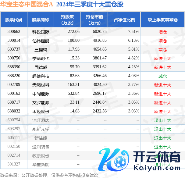 华宝生态中国搀和A为搀和型-偏股基金,凭证最新一期基金季报败露,该基金钞票建立:股票占净值比87.63%,债券占净值比1.26%,现款占净值比9.47%。基金十大重仓股如下: