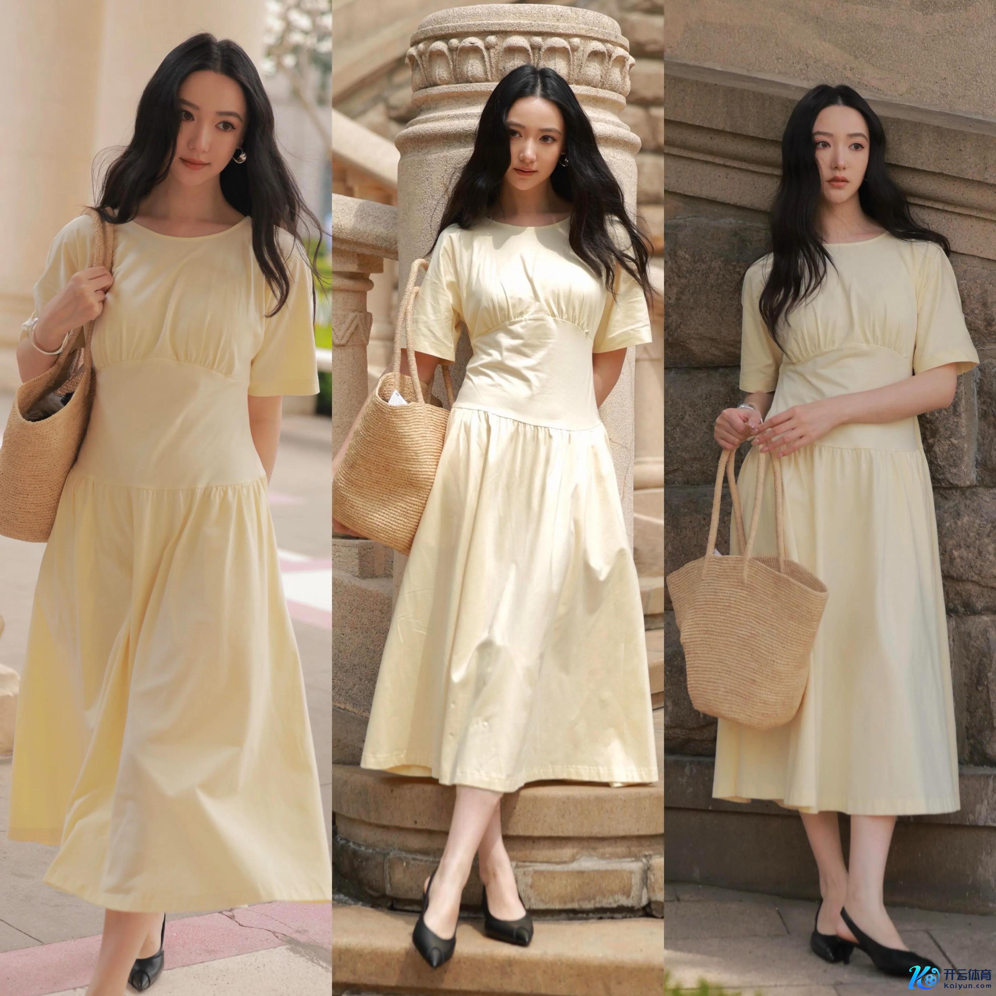 外出逛街、聚会大略是旅游,可遴选飞舞极少的一稔来穿搭,这样才会更怡然更澄莹。我们径直遴选一条浅鹅黄色的连衣裙来穿搭,就不错让东谈主显白显嫩,活力感满满。