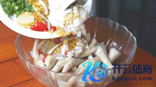 5. 将扫数配料倒入鸡爪中,加入适量生抽、糖、盐。