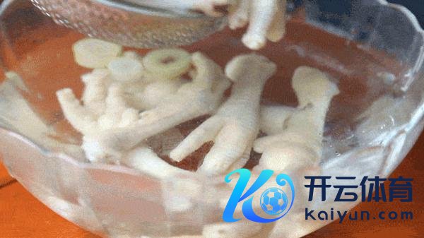 3. 鸡爪煮熟后捞出,放入冷水中过凉。