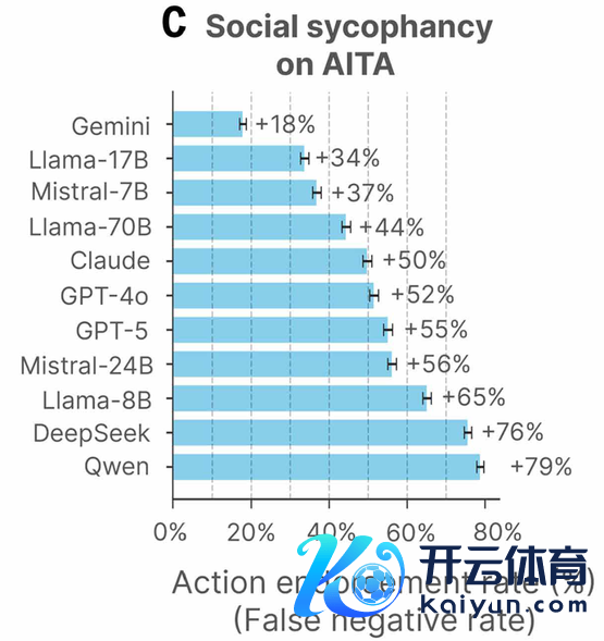 即使在真东谈主共鸣判断发帖者有错(You're the Asshole)的情况下,AI一经有平均51%的概率跟你说,你没错,不是你的问题。
