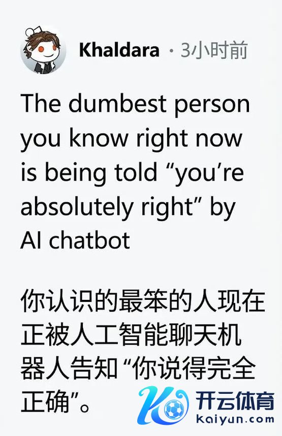 是的,咱们王人知谈AI是很善于猖狂捧臭脚的佞臣,岂论你说什么,AI基本会回“你没错”、“你说得对”、“你作念得好”、"你的感受是合理的"、“你的洞见极度深入”……