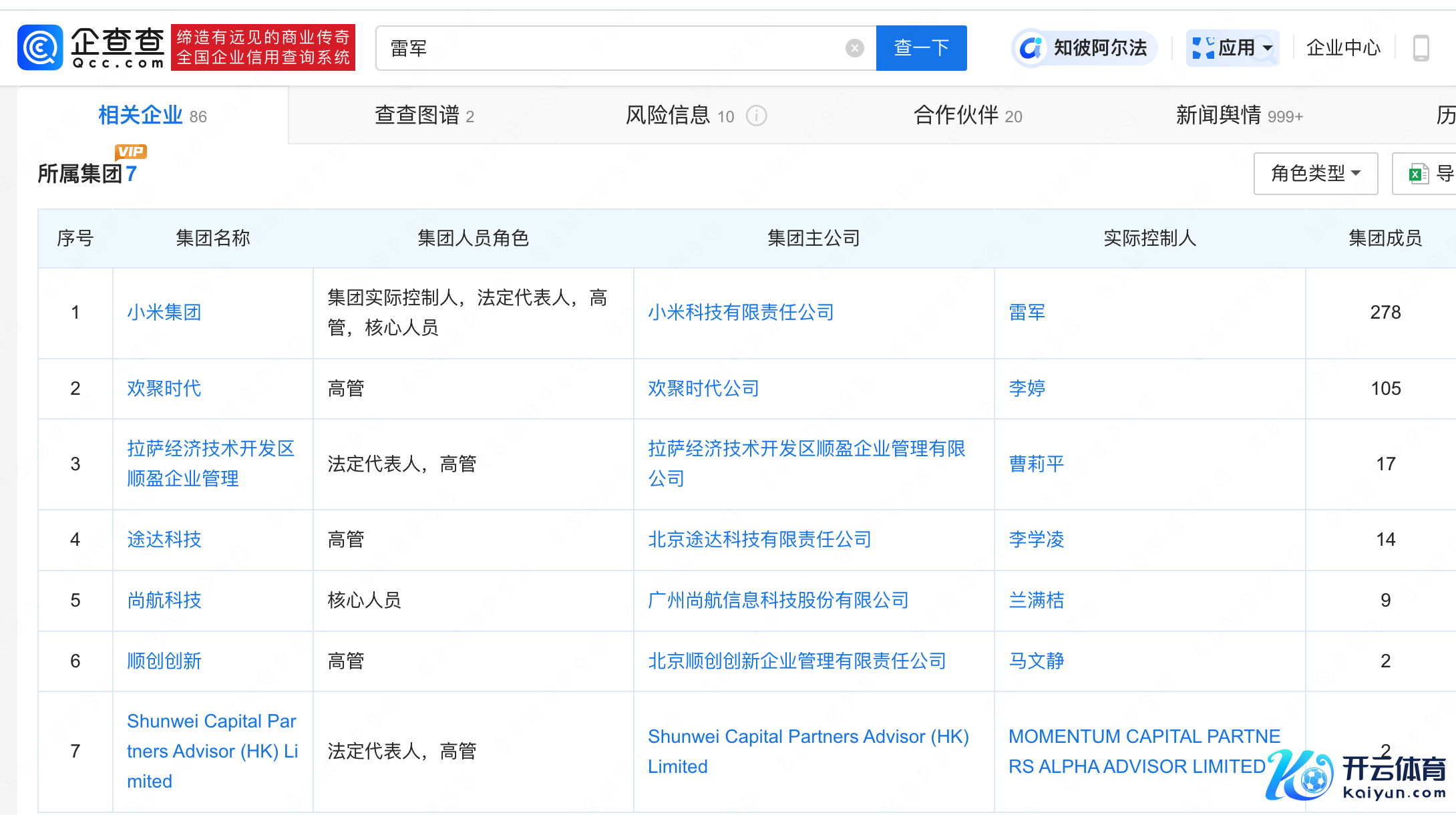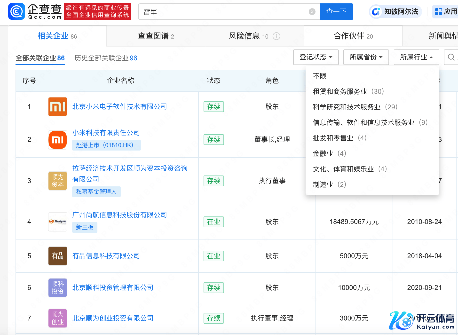 据企查查APP败露,雷军名下关联80余家企业,超60家为存续情状,除担任包括小米科技有限包袱公司等小米集团首创东谈主、本色放置东谈主外,雷军还担任欢聚期间高管,顺为老本旗下多家公司执行董事,投资疆域除手机业务联系边界外,还触及汽车、传媒、创投等边界。