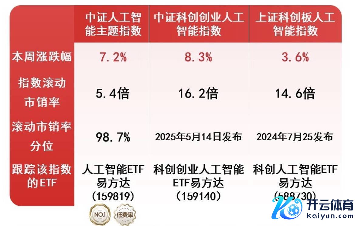 中证科创创业东说念主工智能指数:本周高涨 8.3%,近 1 月累计高涨 10.0%,本年以来累计高涨 16.9%,近 1 年累计高涨 147.8%,基日以来累计高涨 240.0%,基日以来年化涨幅 22.2%;指数转动市销率 16.2 倍。指数聚焦科创创业东说念主工智能龙头,由科创板和创业板市鸠合 50 只市值较大且业务触及东说念主工智能基础资源、工夫以及愚弄撑执的股票构成,电子、通讯、计较机行业占比约 90%,成长弹性超越。