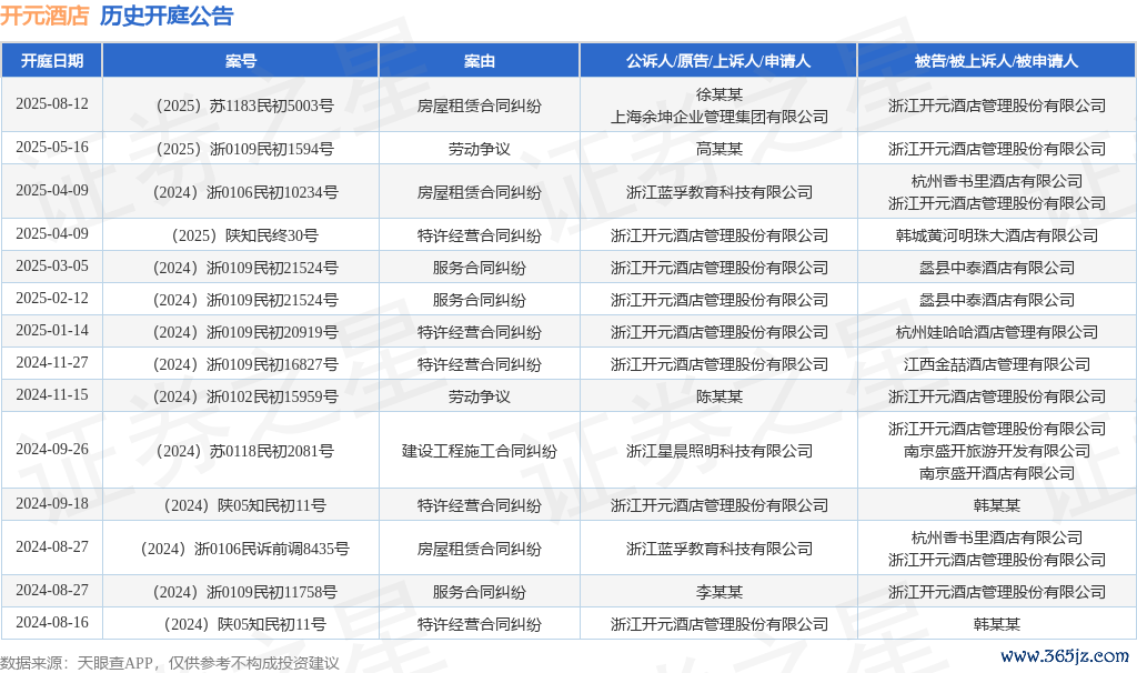 本站音书,左证天眼查APP透露,近日公布了一则浙江开元旅馆处罚股份有限公司当作被告/被上诉东说念主的开庭公告,醒目现实如下: